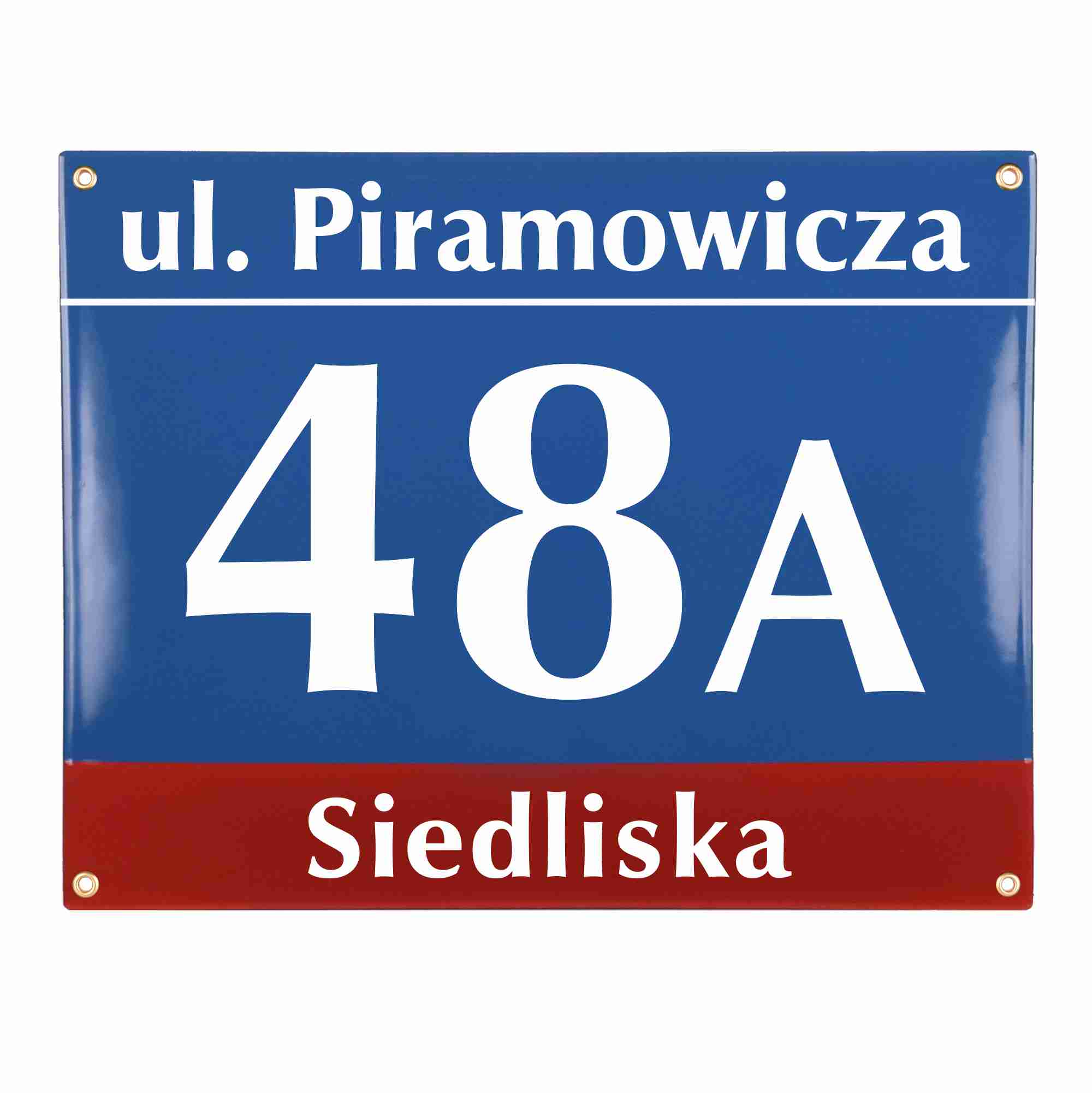 Modern, three-color, enameled, resistant to weather conditions, metal address plaque