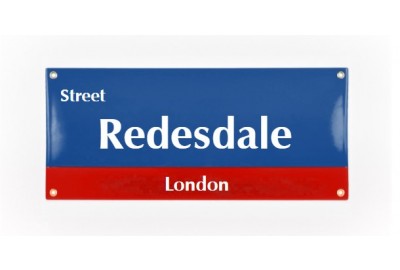 Classic, two-color, enameled, resistant to weather conditions, metal street plaque