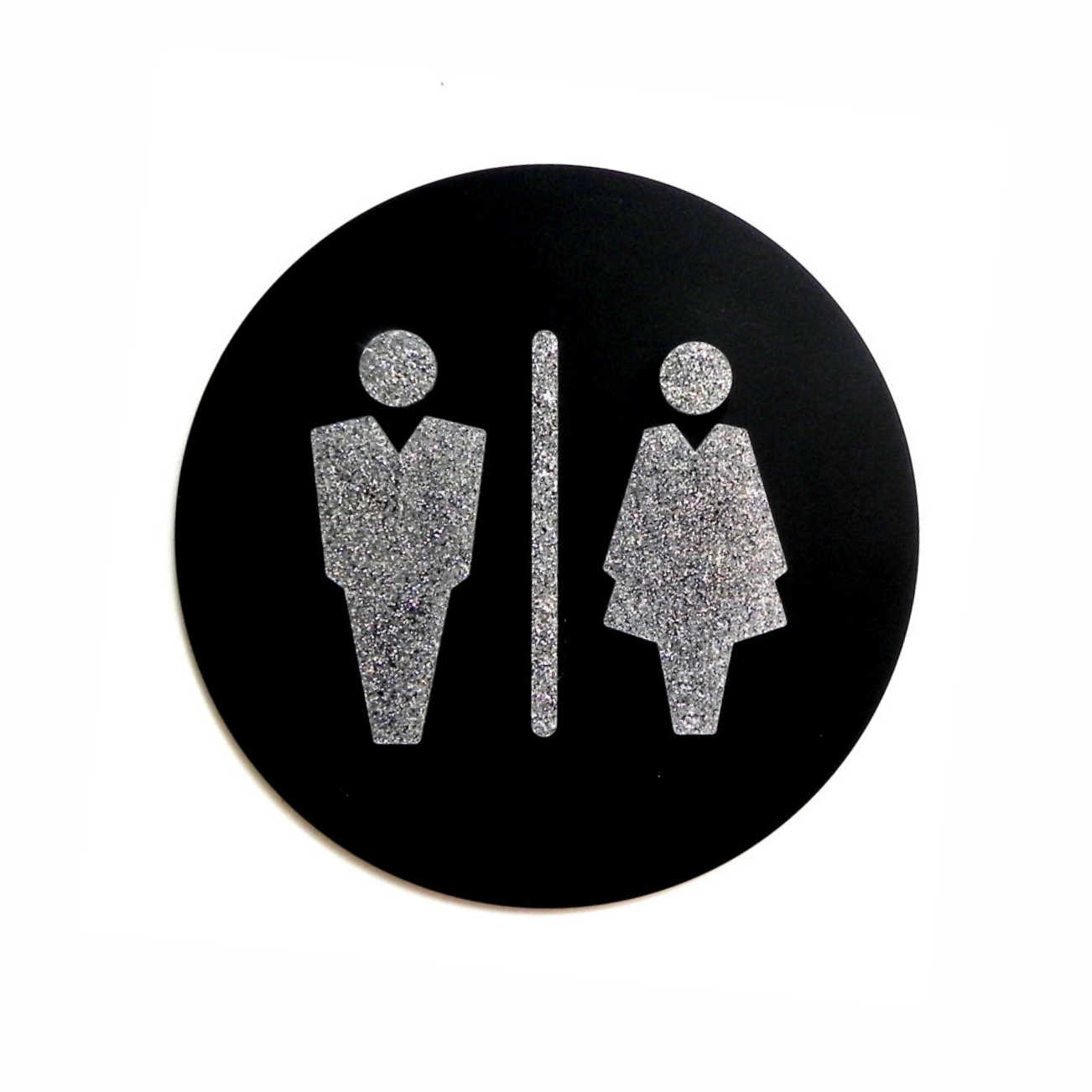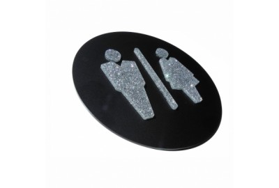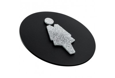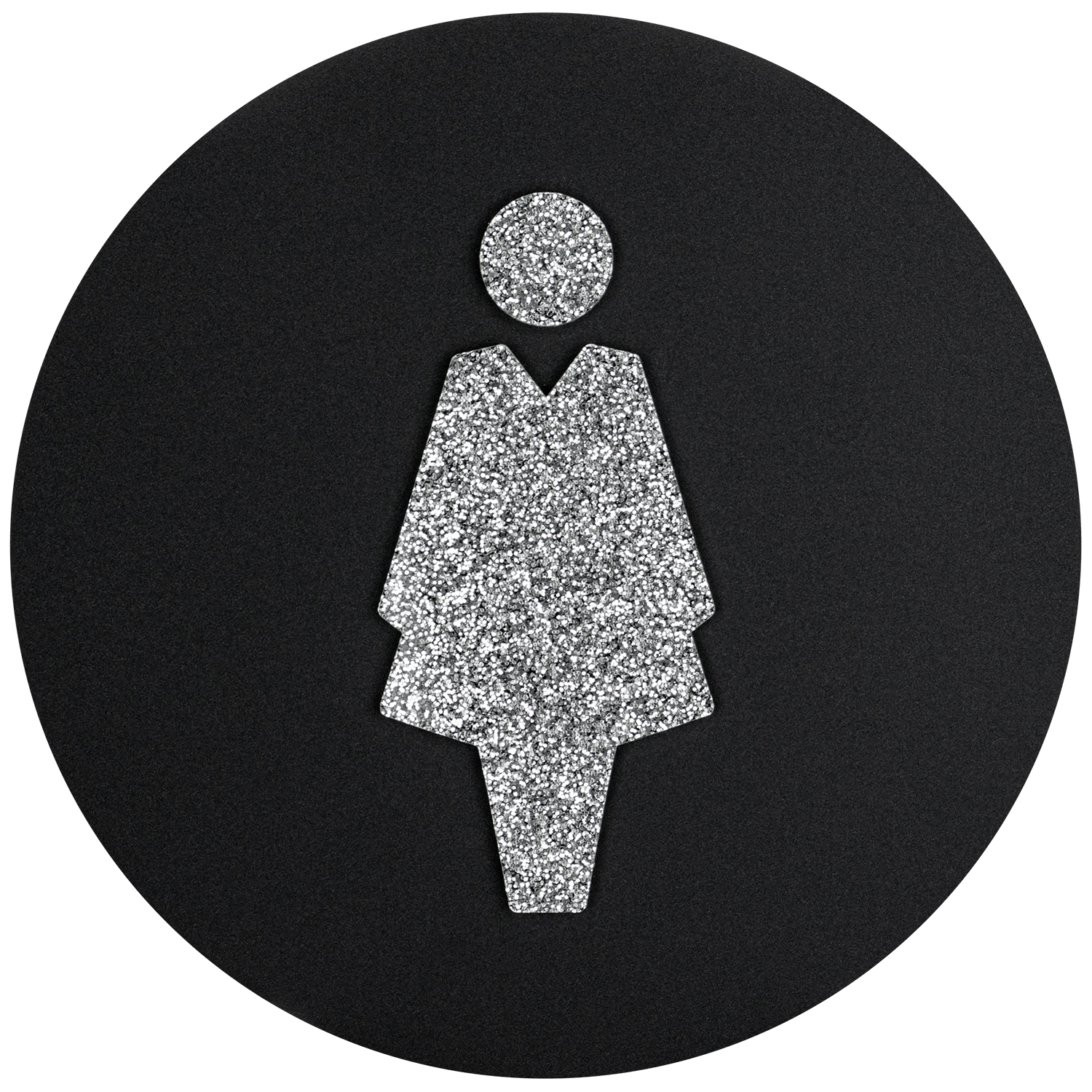 Toilet Signage, toilet for women, glitter, silver, dia14 cm