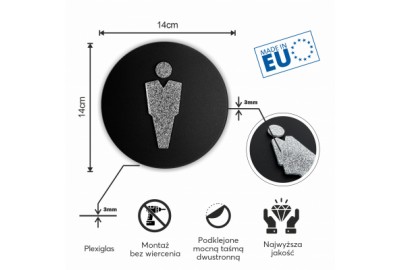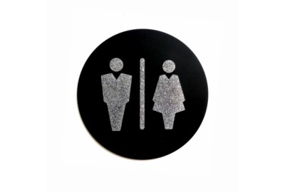 Toilet Signage, toilet for men, glitter, silver, dia14 cm