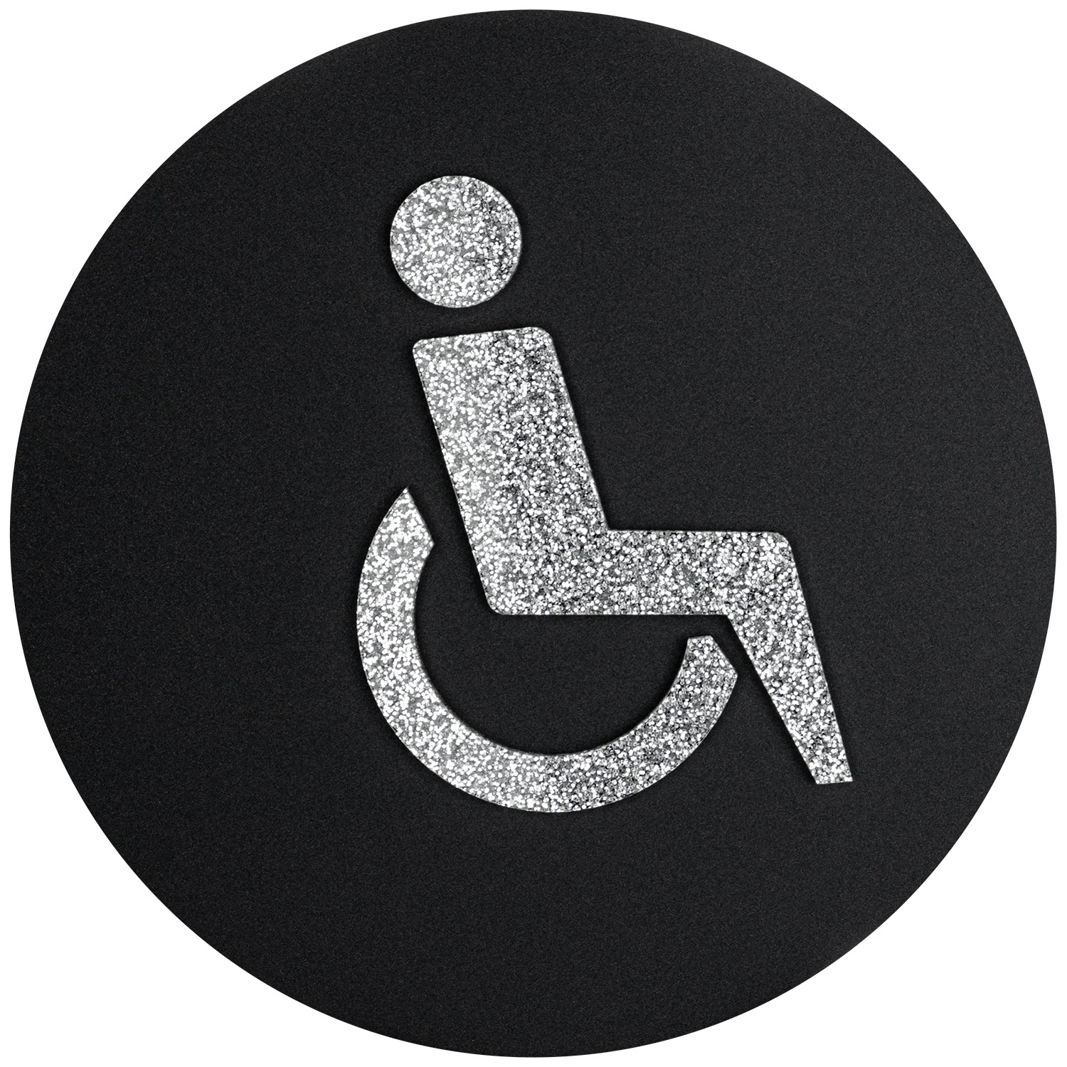 Toilet Signage, toilet for disabled, glitter, silver, dia14 cm