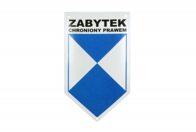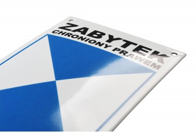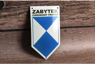 Enameled sign "Monument protected by law"/Zabytek prawem chroniony"