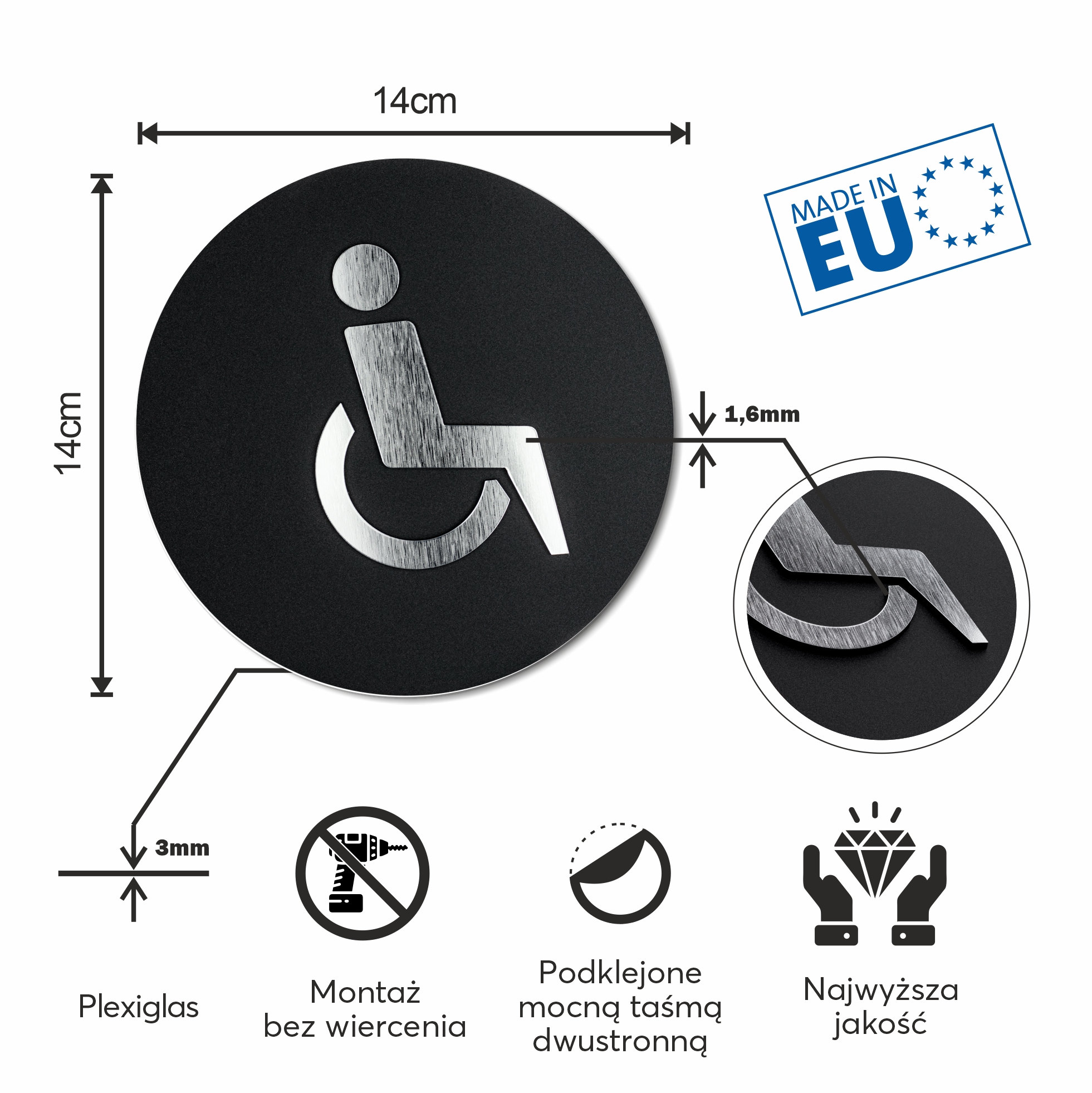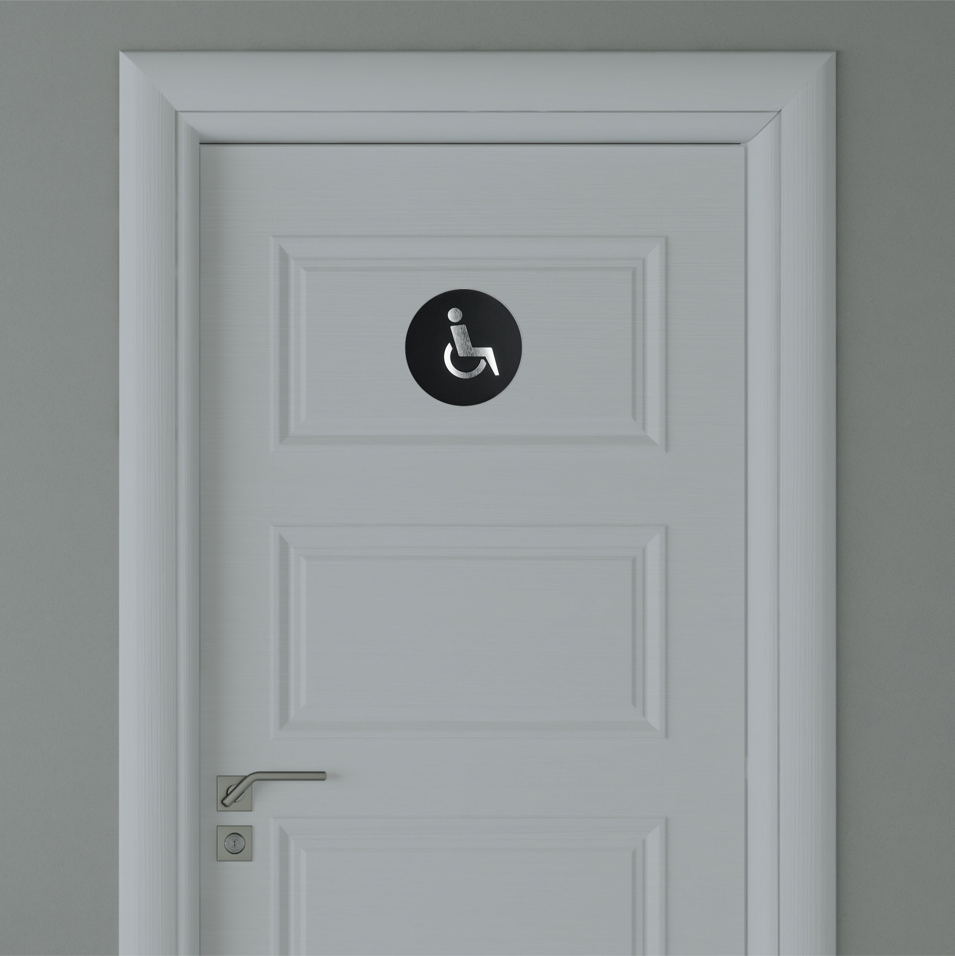 Toilet Signage, toilet for disalbed, laminate, silver, dia14 cm
