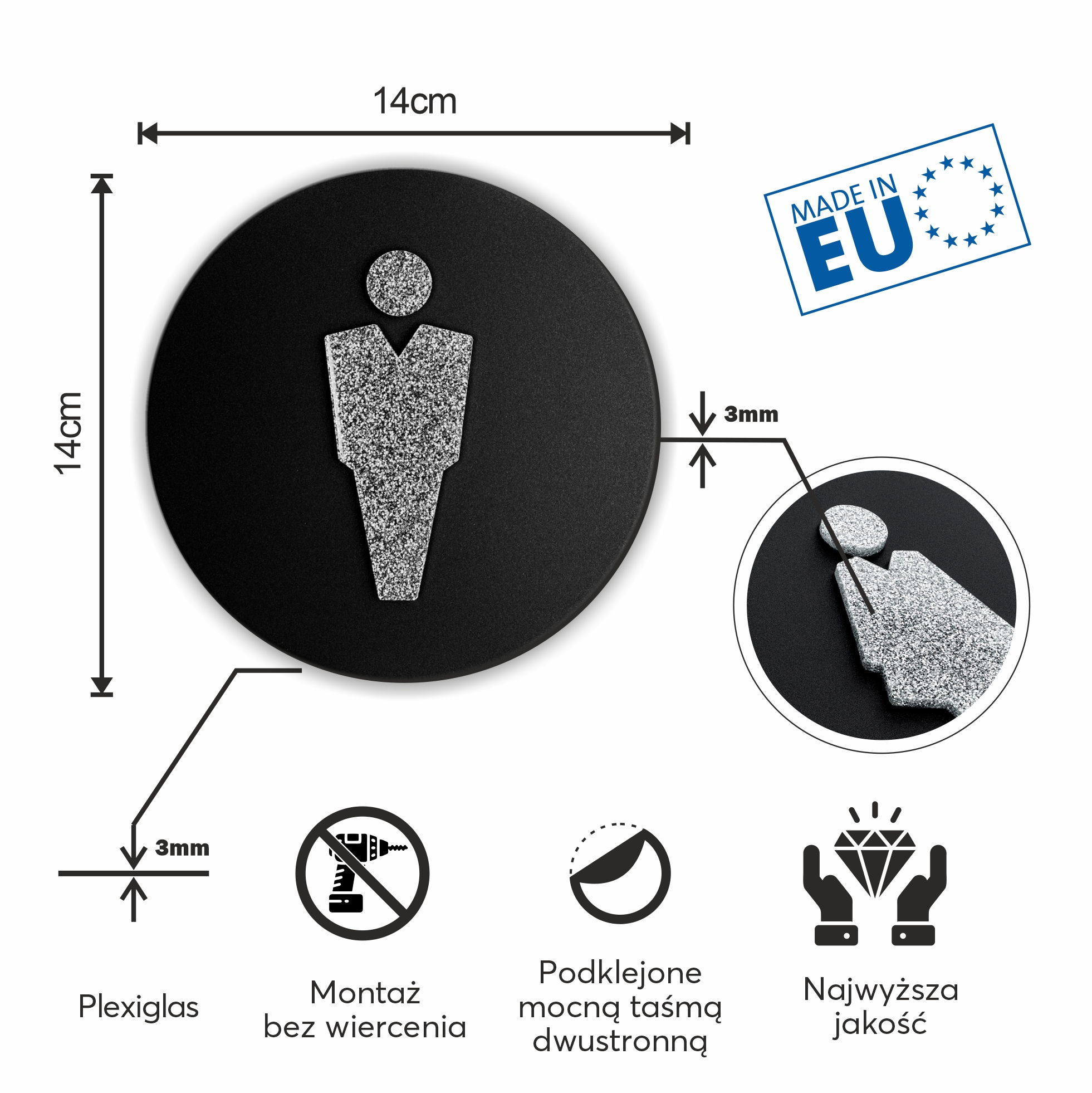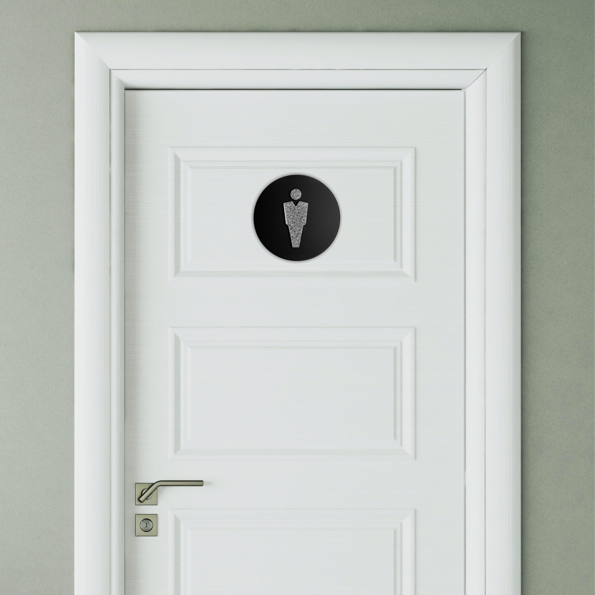 Toilet Signage, toilet for men, glitter, silver, dia14 cm