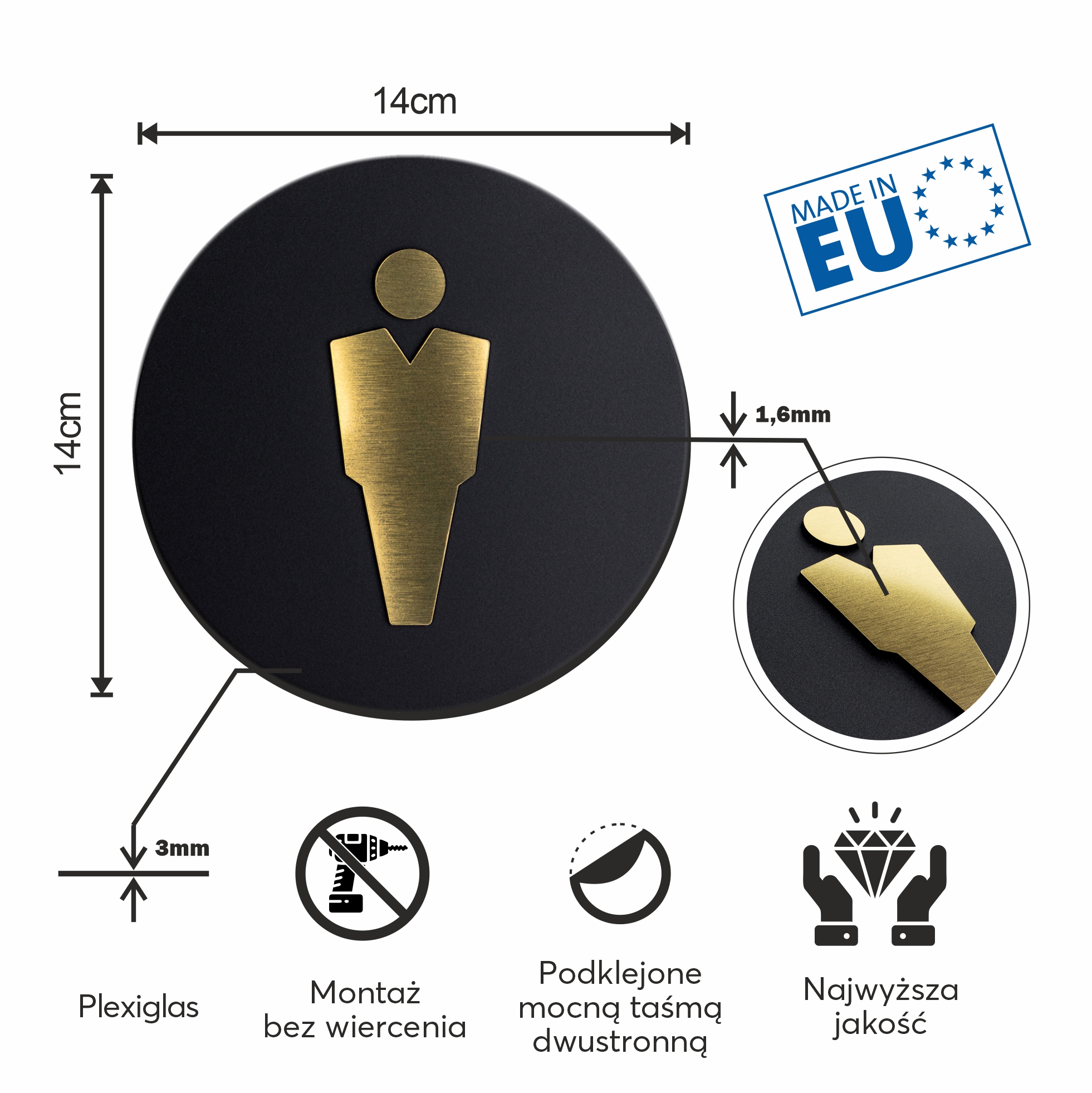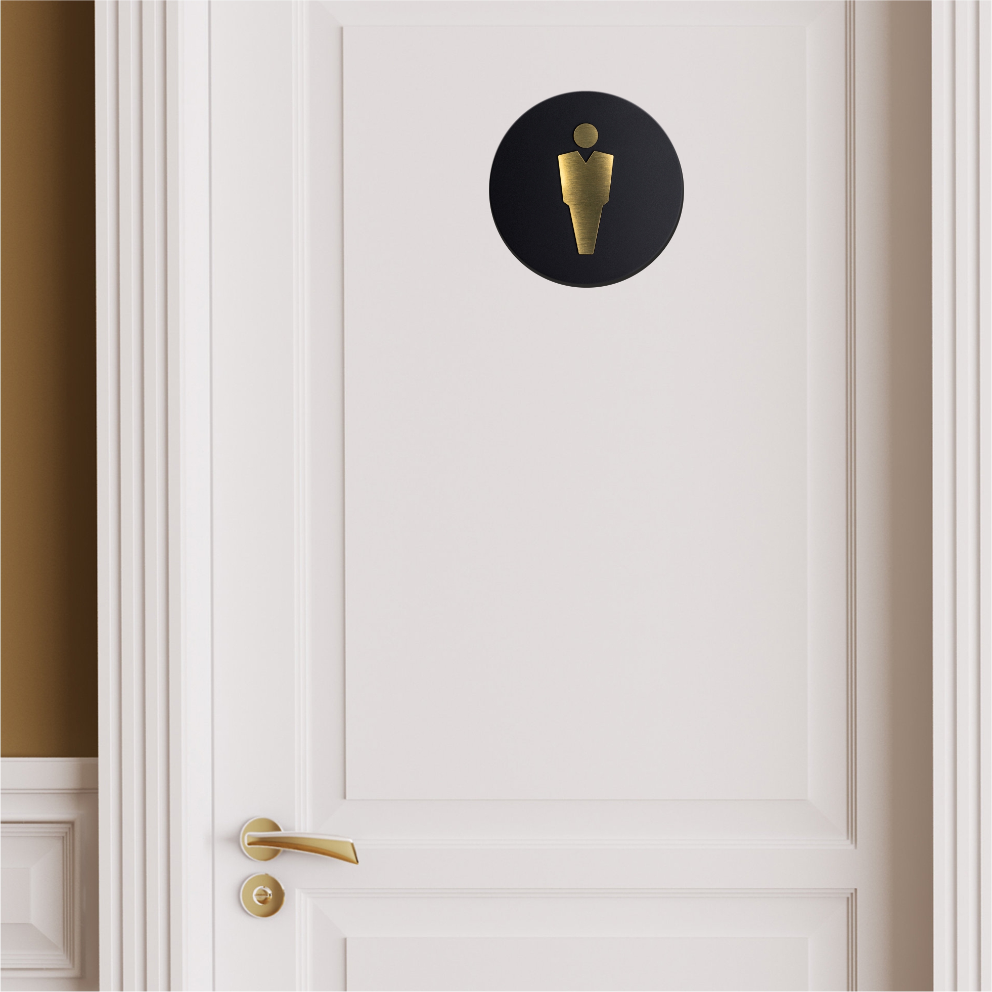Toilet Signage, toilet for men, laminate, gold, dia14 cm