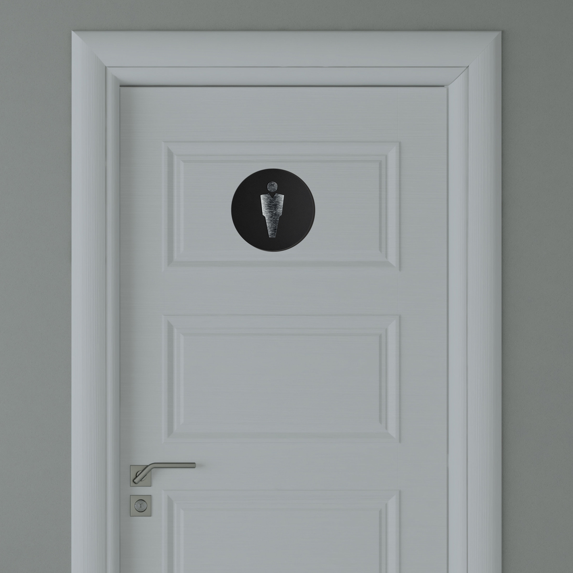 Toilet Signage, toilet for men, laminate, silver, dia14 cm