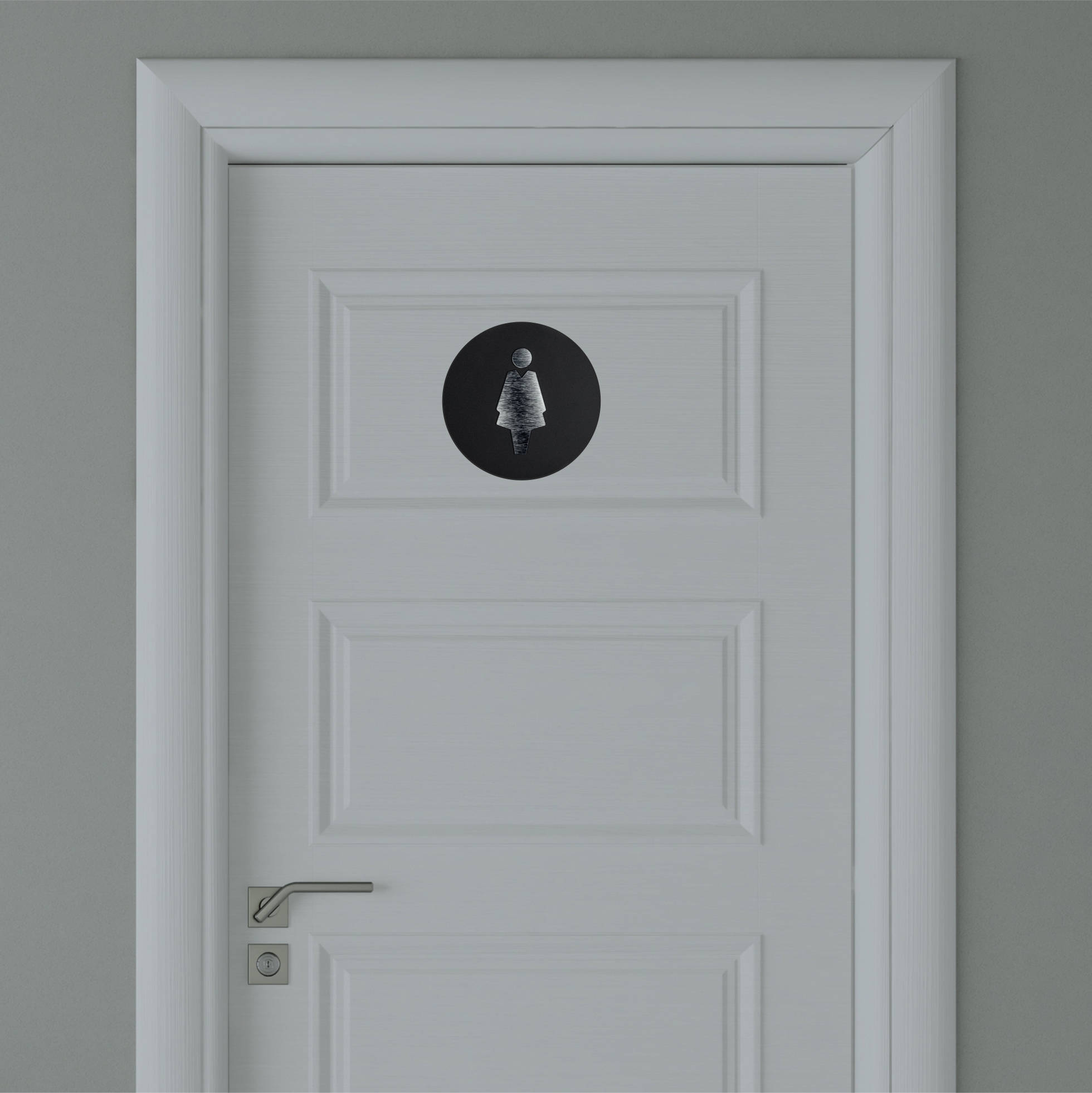 Toilet Signage, toilet for women, laminate, silver, dia14 cm