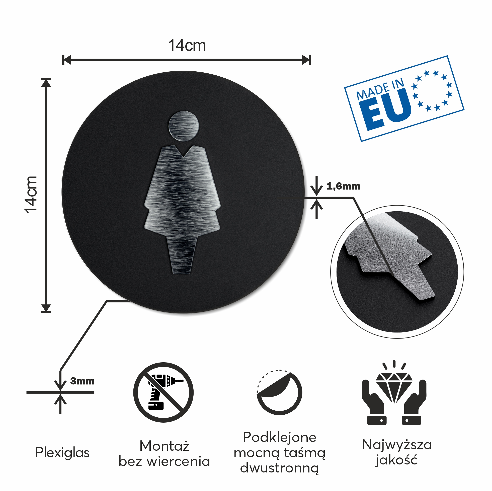 Toilet signs are made with great precision from durable and modern materials, so they will work well in both the hot summer and very cold winter. The color of the sign does not change under the influence of sunlight, therefore the sign will be purchased for many years.