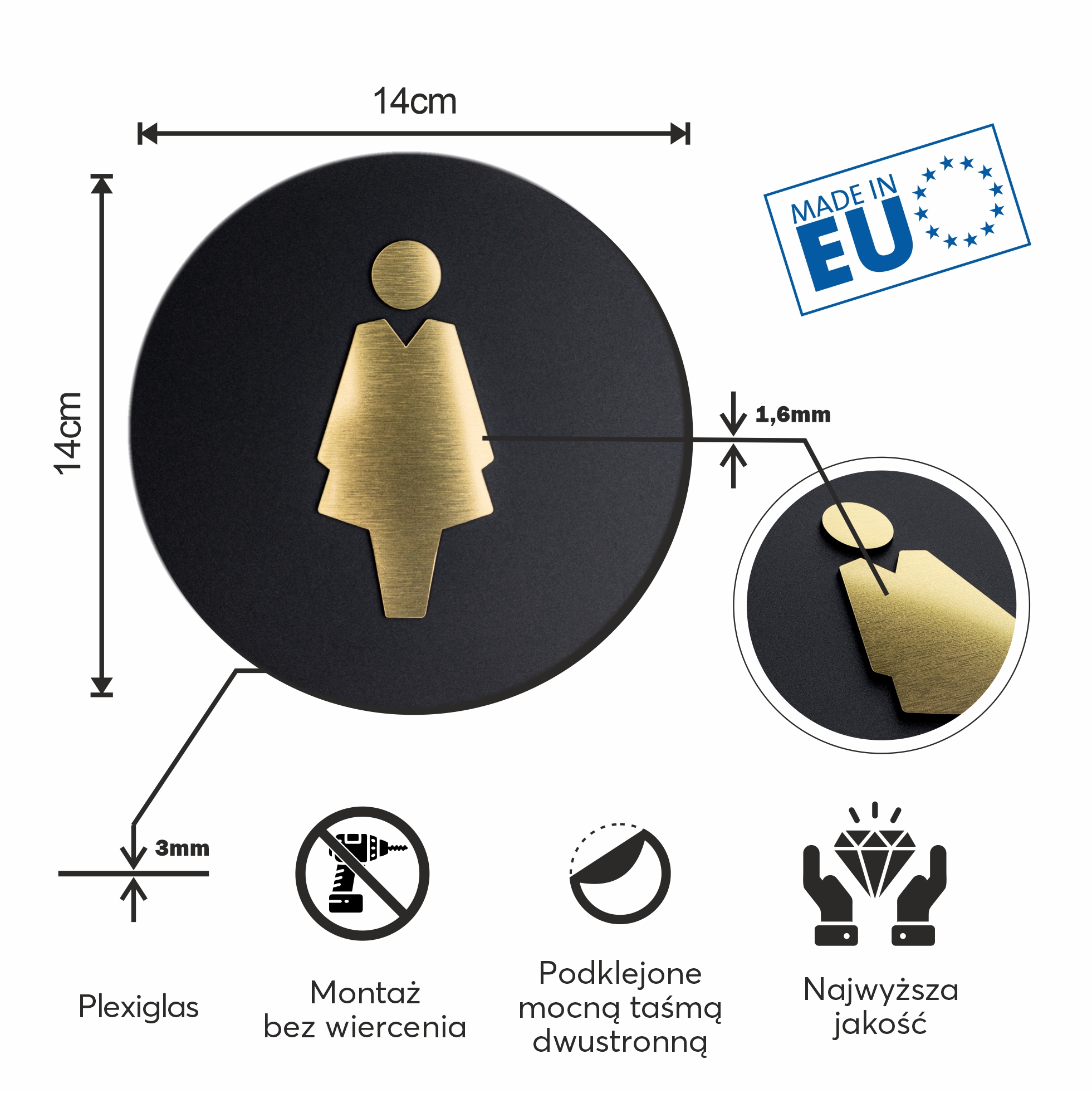 Toilet signs are made with great precision from durable and modern materials, so they will work well in both the hot summer and very cold winter. The color of the sign does not change under the influence of sunlight, therefore the sign will be purchased for many years.
