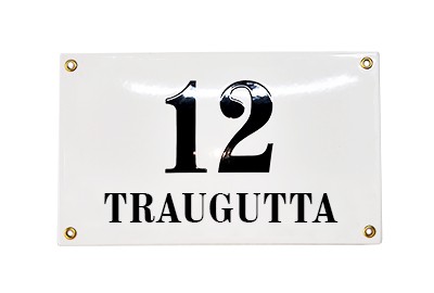 Unsere Adressschilder werden in traditioneller Emailletechnik von Hand gefertigt.